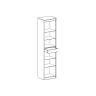 В витрине за общей стеклянной дверцей располагаются выдвижной ящик, четыре стеклянные и одна жёсткая полка.